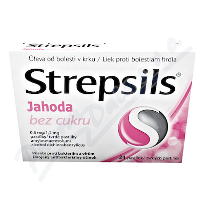 VezuLeky.cz > Zdraví a léky > Léky na ucpaný nos a bolest v krku > Strepsils Jahoda bez cukru 0.6mg/1.2mg pas.24