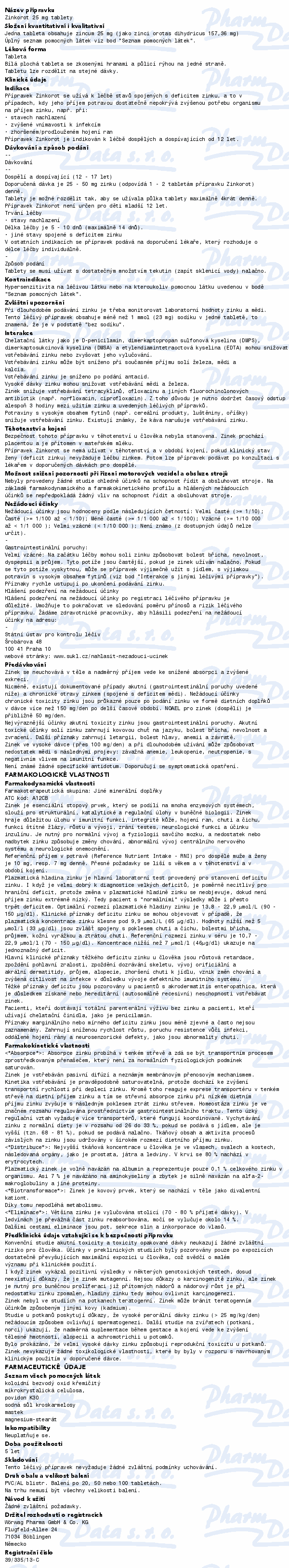 Přípravek Zinkorot 25 mg se užívá při stavech spojených s deficitem zinku, pokud je jeho přísun potravou nižší než zvýšené požadavky organismu. Zinek má značný efekt na obranu našeho imunitního systému, je potřebný pro biologické procesy v těle. Čtěte pozorně příbalový leták.
