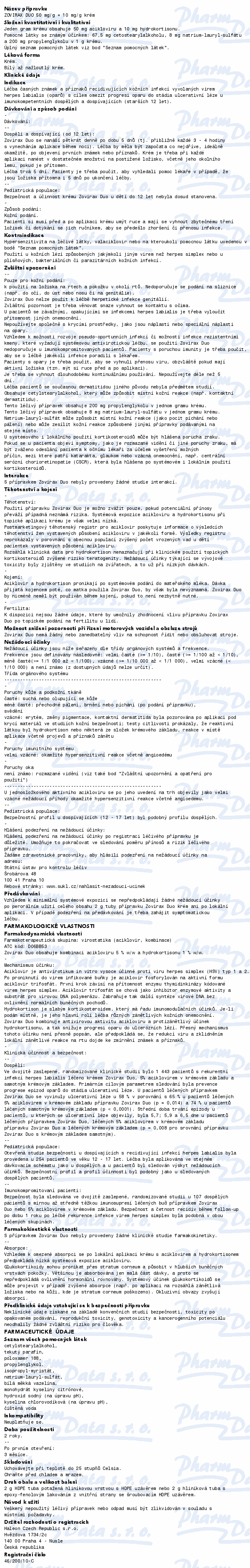 Krém Zovirax Duo se používá k léčbě prvních známek a příznaků oparu na rtu a obličeji (např. svědění, brnění nebo zarudnutí), aby se snížila pravděpodobnost, že se opar rozvine do puchýřku. Čtěte pozorně příbalový leták.